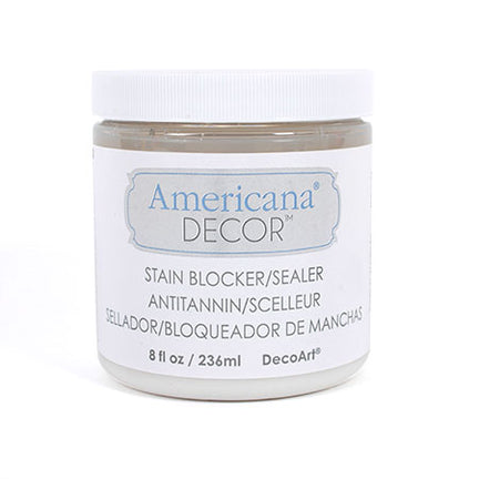 Le scellant Americana® Decor™ crée une barrière protectrice entre la peinture et la surface. Produit à utiliser pour empêcher la décoloration à travers la peinture. Certaines surfaces sont usées, révèlent des taches anciennes ou sont fabriquées en bois contenant de grandes quantités de tanins (cèdre, séquoia ou pin noueux). Tout ceci peut causer des taches dans la peinture. Si une décoloration apparaît, laisser sécher la peinture complètement, puis appliquer le scellant pour créer une barrière protectrice entre la peinture et la surface.