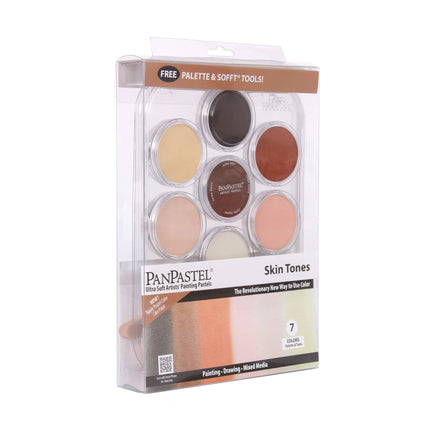 Cet ensemble de sept teintes de peau contient une palette de nuances présentée sous la forme de pastilles en godets empilables. Les couleurs PanPastel sont de qualité professionnelle. Elles sont tendres, effaçables et offrent une grande résistance à la lumière.