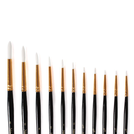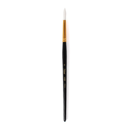 The paintbrush with a short handle and synthetic bristles is suited for working with acrylics, watercolours, ink and gouache. It meet the needs of artists and allow for a wide range of techniques. They are of good quality and are affordable.